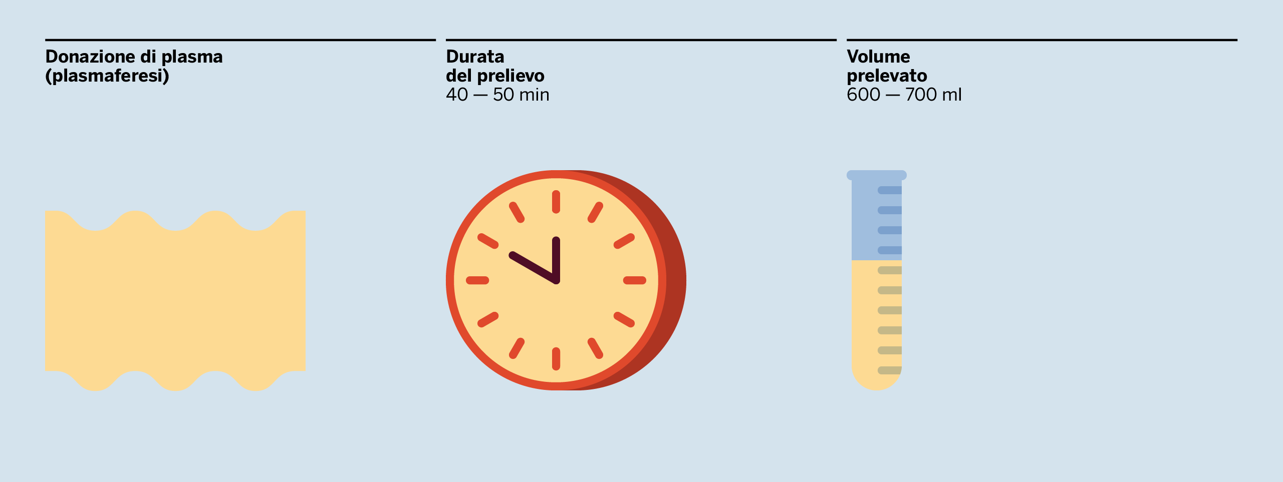 Nel caso della plasmaferesi, il volume prelevato deve essere compreso tra un minimo di 600 ml e un massimo di 700 ml al netto dell’anticoagulante, con un volume massimo complessivo di 1,5 litri al mese e 12 litri nell’anno.